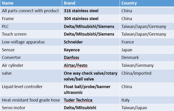 1. Ang materyal ng lahat ng mga bahagi na dumadaloy sa produkto ay maaaring magamit ayon sa karakter ng produkto, kaya ang mga materyales ay mainam upang punan ang karamihan sa mga produktong malakas na kinakain.