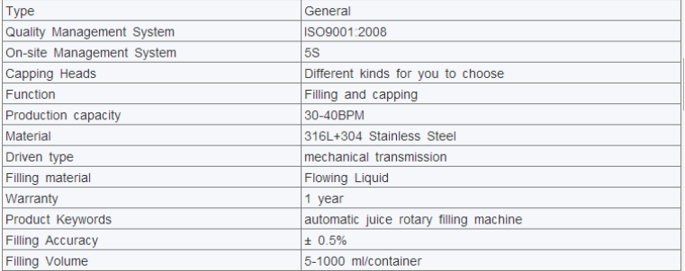Ang aming awtomatikong rotary turnplate na pagpuno at capping machine ay angkop para sa pagpuno ng tubig-manipis sa daluyan na makapal na mga produkto, tulad ng likidong gamot, toner, perm lotion, air freshener, pangangalaga sa balat, atbp.